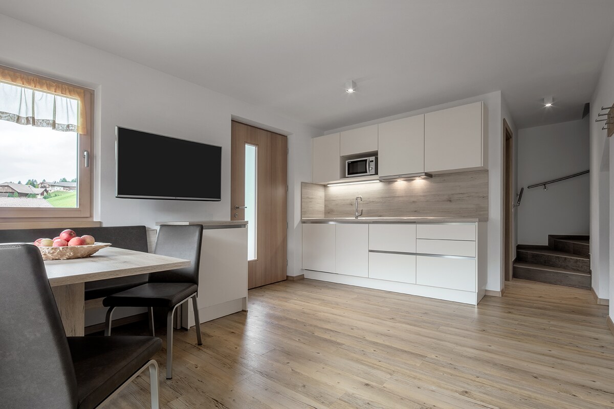 The house sits in a quiet and scenic location at the start of the pedestrian zone of San Cassiano in Alta Badia, surrounded by the breathtaking Dolomites. The apartment is cosy and homely, the interiors are wood-panelled and furnished in the traditional and warm Tyrolean style. The house is in the vicinity of the Piz Sorega ski lift.