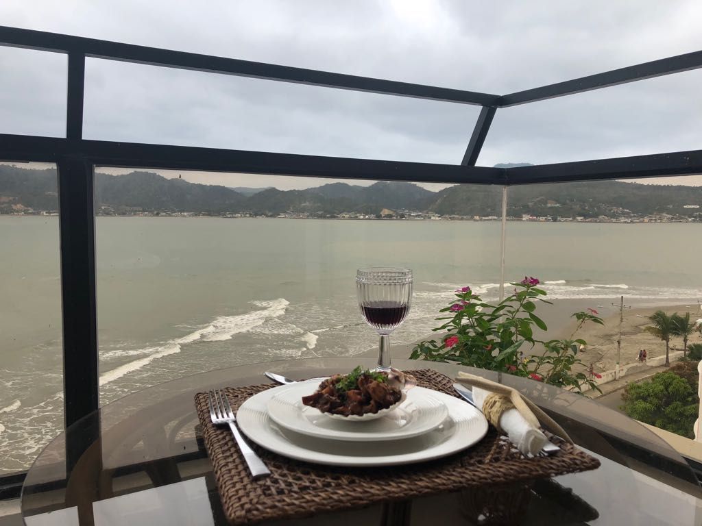 This is a bright and comfortable private apartment with spectacular views of the ocean. In 2010, it received a recognition from city officials as the most beautiful residence in Bahía de Caráquez. The apartment is spacious, with 2 full bathrooms and 3 bedrooms, each with an air conditioner unit. The living room and dining area are fully furnished. You'll have full access to the kitchen to prepare your own meals. There is also a balcony facing the ocean, the perfect spot to watch the sunset.
