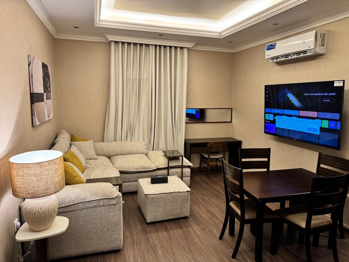 غرفة فاخرة بسرير ماستر مريح، جلسة أنيقة، شاشة ذكية، دورة مياه خاصة وركن قهوة. قريب من الحرم المكي وفي منطقة هادئة وآمنة بجوار جامع الراجحي، مع سهولة الوصول للمولات والمطاعم والممشى. مثالي للراحة والسكينة لقضاء أجمل الأوقات. Luxury room with master bed, stylish seating, smart TV, private bathroom, and coffee corner. Near Al-Haram in a quiet, safe area next to Al-Rajhi Mosque, with access to malls, restaurants, and walking areas. Perfect for comfort, relaxation, and unforgettable stays.