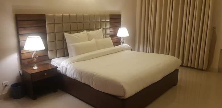 - Appartement d'une chambre au dernier étage - Personnel sur place 24h/24 pour répondre à vos besoins ; - Immeuble familial, nous n'acceptons pas les fêtes/couples non mariés - place de parking souterraine dédiée - Situé près de Johar Town, offrant un accès facile aux équipements - carte d'identité ou passeport requis - Cafétéria qui livre de la nourriture directement dans votre chambre - Environ 25 minutes de l'aéroport pour plus de commodité de voyage - Escapade parfaite