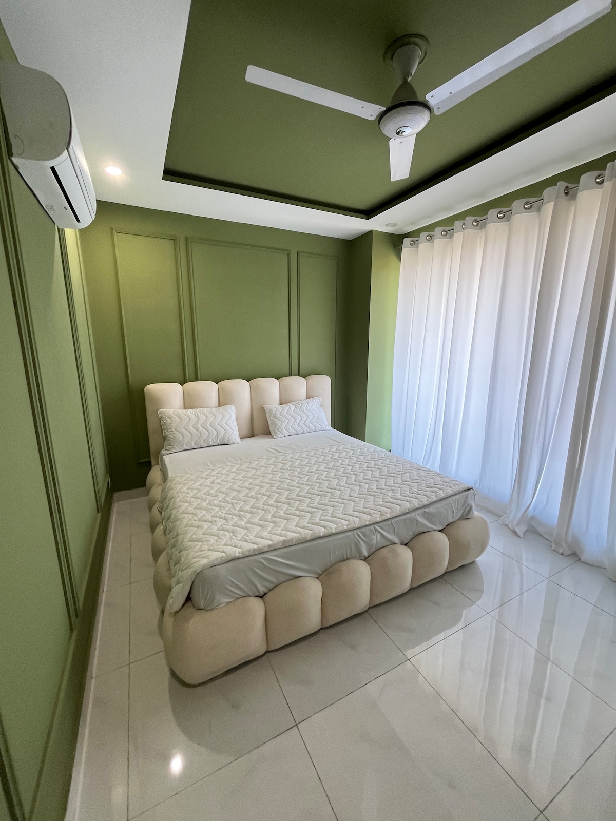 This apartment boasts stunning city views and is perfect for a relaxing getaway or business trip. Enjoy the comfort of a spacious living area, a fully equipped kitchen, and a cozy bedroom with plush linens. Located in the City Prime Location, with well connected roads network Security requires guest ID to be verified and retained at time of check in - All adult guests may required by security reception to show their id cards amid security concerns in city.