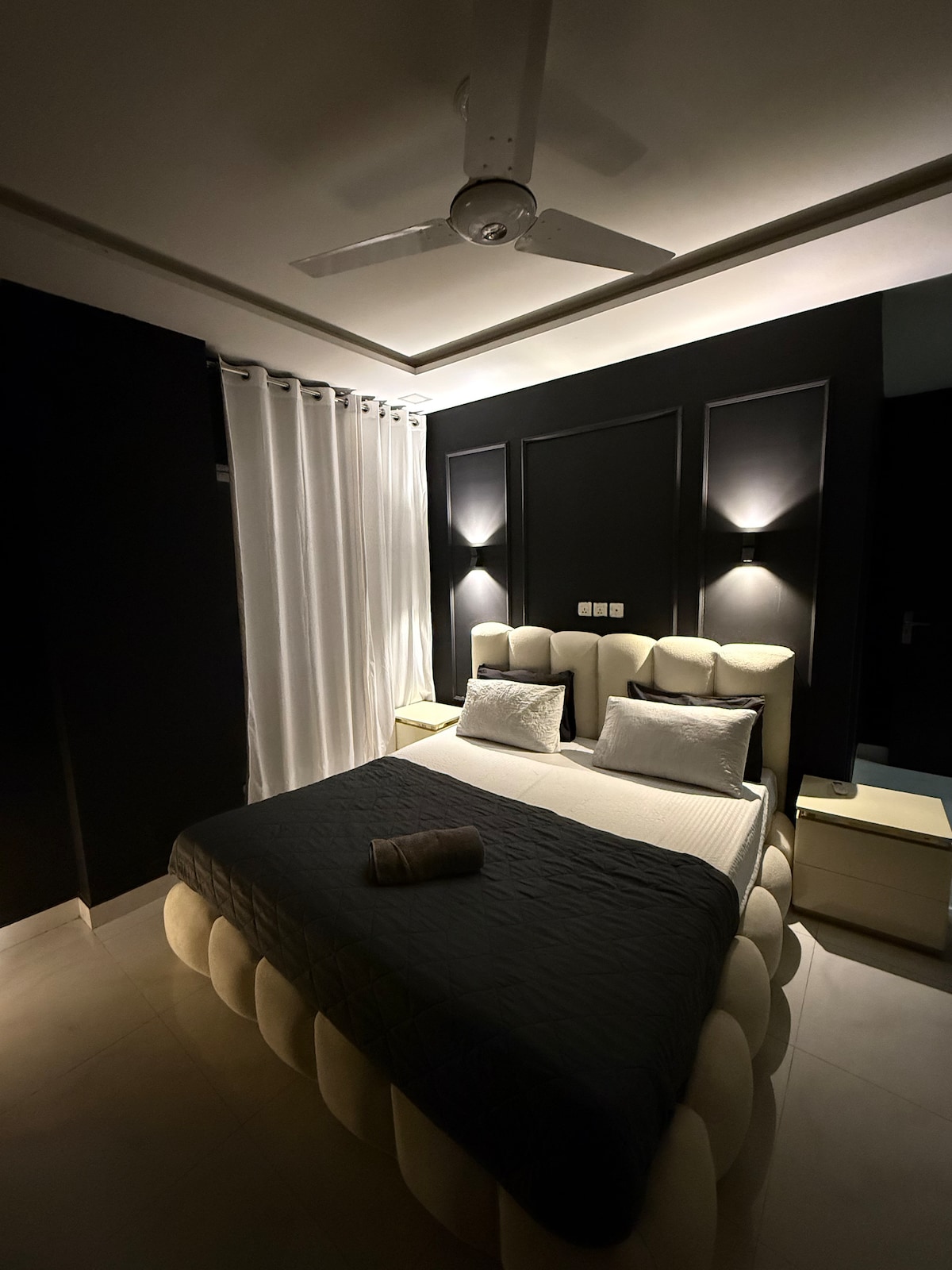 🖤 Arkyn A Private Dark Retreat in Zameen Opal, Lahore. Luxury 1BHK with moody dark décor, plush king bed, smart TV, and high-speed WiFi. Enjoy a fully equipped kitchen, cozy lounge, secure parking, and 24/7 security. 🔐 Self check-in for total privacy. Perfect for couples, solo travelers, or business trips close to cafes, shopping, and main roads. Your stylish, peaceful escape awaits.