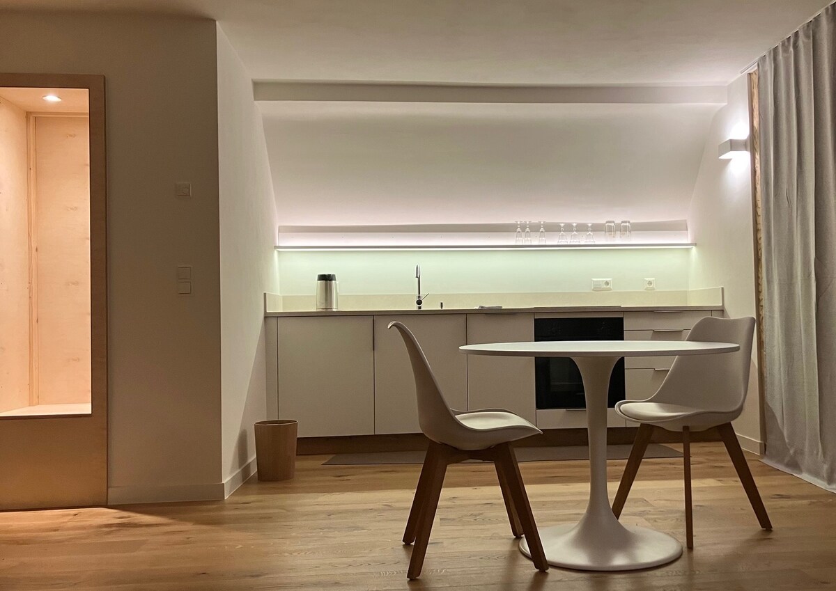 L'idée du Home Resort Obertal : arriver avec facilité. Dans la nature. Dans la maison. Chez soi. Et puis se développer selon ses propres souhaits : randonnée, natation, visite de restaurants étoilés, ski de fond, lecture, ne rien faire, travailler, sauter sur un trampoline, jouer du piano, découvrir le parc national, la culture et l'art... Des serviettes, des serviettes de bain et des draps sont à votre disposition à votre arrivée !