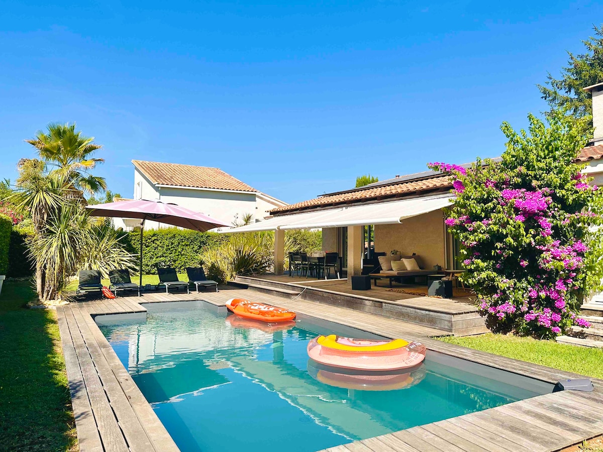 Dépendance 27m2 , facon suite parentale à côté de notre villa. piscine en partage avec la maison. Entree privee pas de mur mitoyen avec la villa Une terrasse avec table sous la pergola vous est réservée. linge de lit mis à votre disposition . Ce n’est pas un studio, donc il n y a pas de vraie cuisine ni evier. Cependant l’espace au fond est équipé d’un frigo/ congelateur, micro onde , machine à café, grille pain, vaisselle. Sucre, thé, capsules café à disposition.