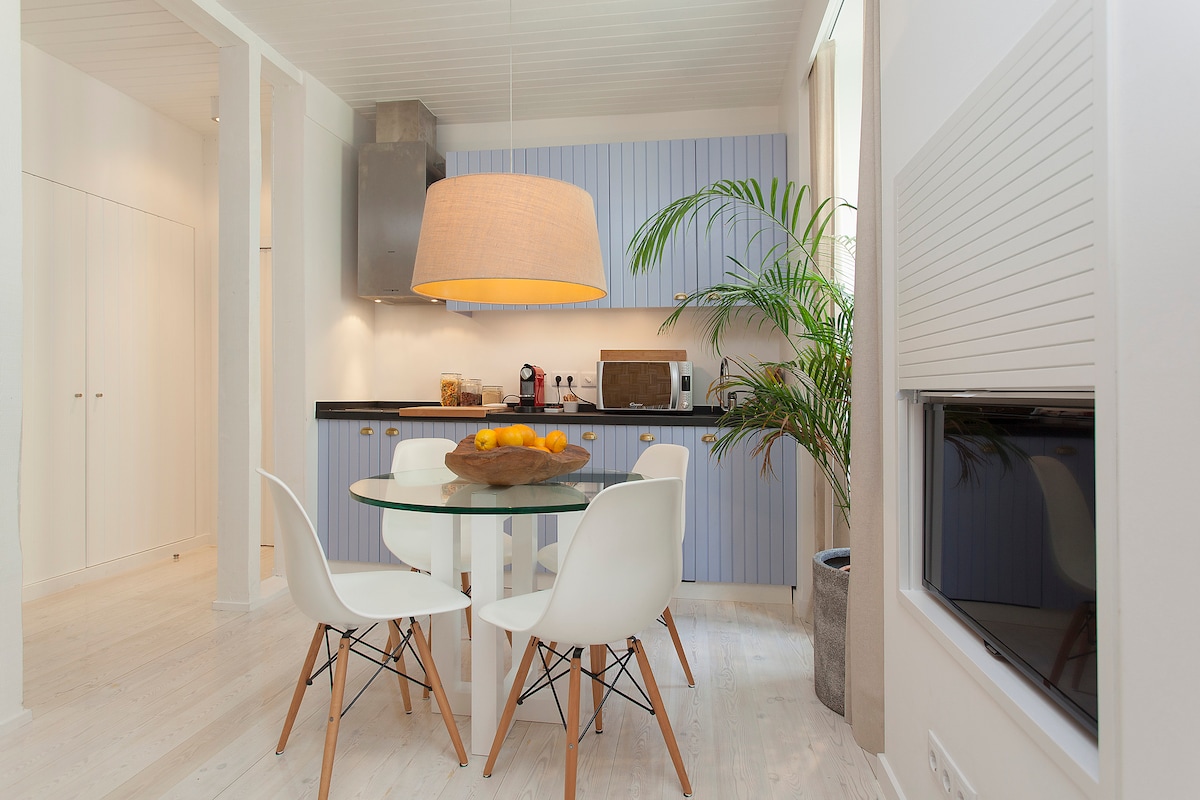 Ce studio a été conçu de telle sorte que bien que les différentes zones soient très bien divisées, l'appartement ne semble pas à exigu ou petit. Il dispose d'un salon, d'une salle à manger, d'une cuisinette et d'une chambre avec salle de bain.