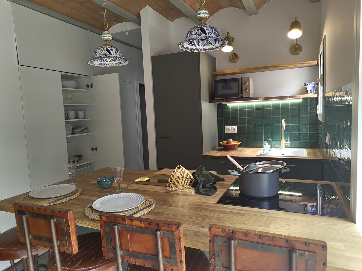 Espace calme, parfait pour se relaxer ou travailler. Chalet confortable dans le Montnegre et près du Montseny, totalement rénové avec piscine en été. Il y a des promenades à faire à partir de la maison et la mer n'est pas loin. À l'abris d'une colline, loin de toute pollution. Les gares RENFE et l'autoroute sont à moins de 10 min en voiture. Wifi haut débit gratuit. Parking spacieux. Animaux de compagnies acceptés. Le logement comporte des escaliers, il n'est donc pas accessible aux PMR.