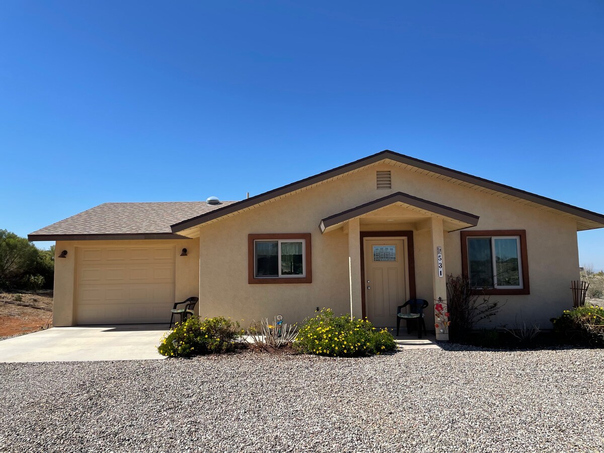 Une nouvelle maison de 1200 pieds carrés. Tous les appareils électroménagers sont neufs, quartier agréable et lumineux, vie à la campagne dans le désert. Près du musée de l'air de Pima, de la base aérienne de Davis Monthan, de Tombstone, de la grotte colossale, des cavernes de Karcthner, du parc national de Saguaro, de Tubac et non loin de la gamme de missiles Titan, et à 25 minutes de la région viticole de l'Arizona. Kit Peak est également proche. Beaucoup de choses à faire. Nous adorons aller au Gaslight Theatre, vieux mélodrame au piano.