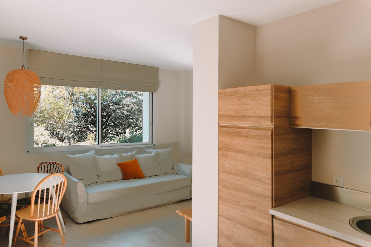 Appartement au 1er étage sans ascenseur, pensé pour allier élégance et fonctionnalité. Entièrement équipé pour accueillir jusqu'à 4 personnes, il offre : Un lit queen-size (160x200) pour des nuits reposantes,Un canapé-lit confortable (140x200) pour vos invités,Une cuisine équipée pour savourer les produits locaux,Une vue dégagée et une lumière généreuse, pour une ambiance intimiste et apaisante.