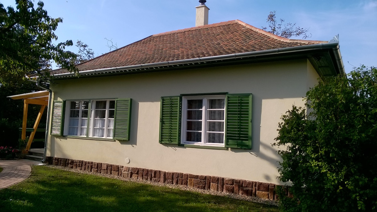 Petit chalet avec grand jardin et poêle à bois traditionnel pour 1 à 3 personnes au bord des bois au cœur de Balaton Uplands NP, dans un petit village isolé, à 15 km de Balaton et du lac thermal de Hévíz. Les sentiers de randonnée commencent à quelques pas, idéal également pour les balades à vélo. Sur préavis d'au moins 2 jours, panier dîner/petit déjeuner disponible. Veuillez noter qu'une taxe de séjour locale de 700 HUF/pers/jour est payable sur le site.