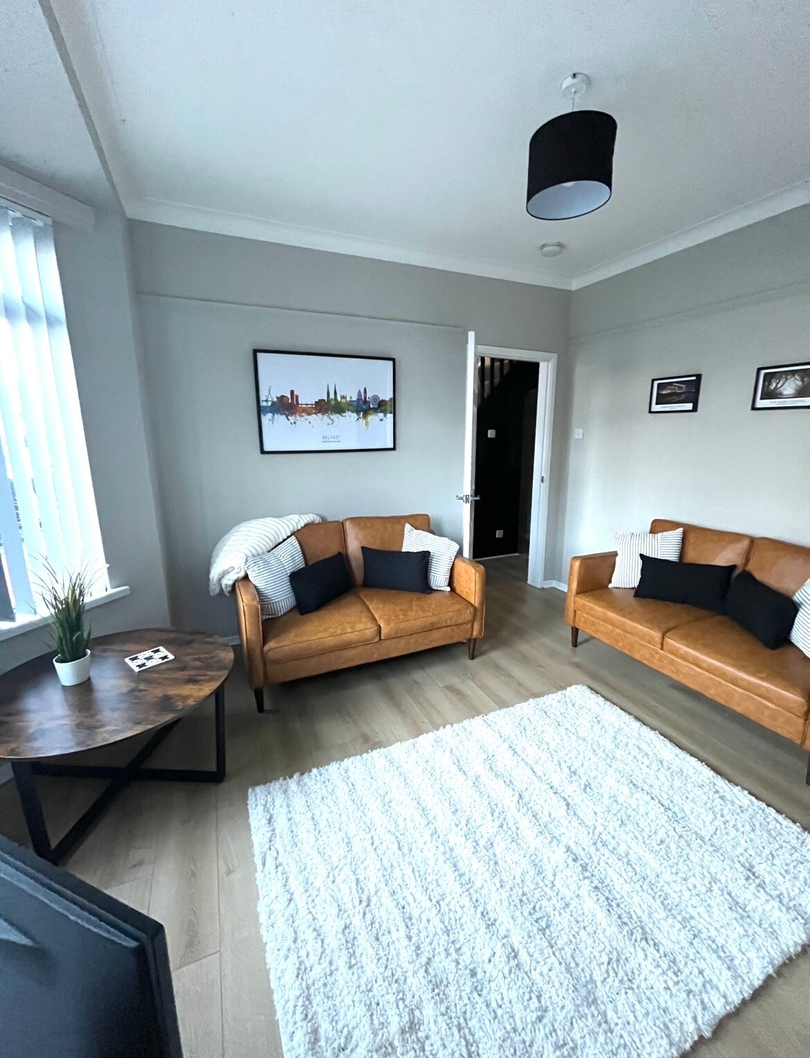 Cette maison de 3 chambres récemment rénovée dispose d'une connexion Wi-Fi rapide, à 3 miles du centre-ville, de l'hôtel de ville de Belfast, de la cathédrale et des quartiers Titanic et de l'arène SSE. Séjour/salle à manger, canapé et fauteuil, télévision et table à manger. Une cuisine entièrement équipée et un bar pour le petit-déjeuner. 3 chambres, deux lits doubles et un lit superposé, toutes disposent de nouveaux matelas, d'un espace de rangement et d'un espace de suspension. Une salle de bain avec douche électrique, meuble meuble et toilettes. Du parking dans la rue, également situé à proximité d'un magasin Tesco et de McDonalds.