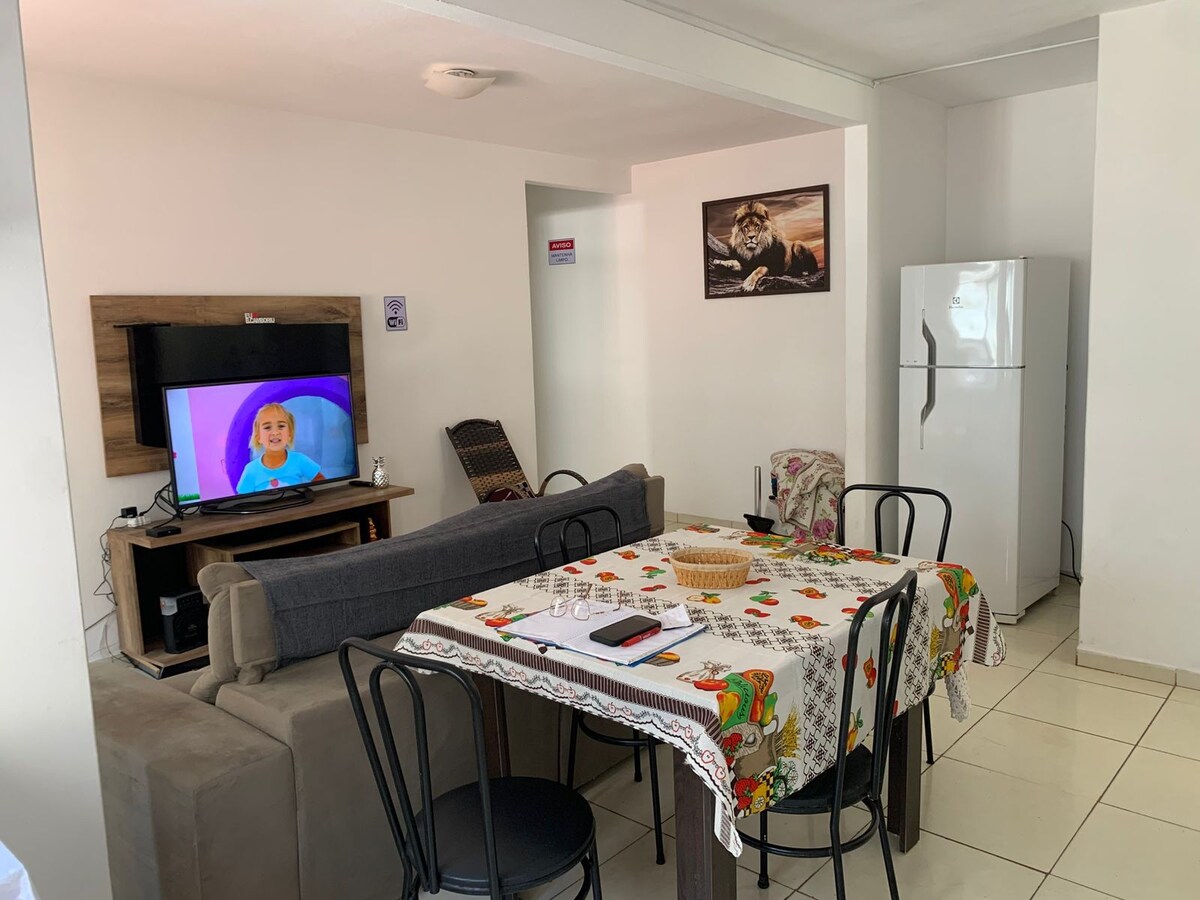Maison d'été confortable, idéale pour deux personnes, située sur un terrain familial avec une tranquillité et une sécurité totales. L'espace est complet et bien aménagé, avec 1 chambre confortable, salon et cuisine combinés, salle de bain et un grand placard. Une option parfaite pour ceux qui recherchent repos et confort pendant la saison. La maison est proche des principales attractions touristiques : • Parc Unipraias • Bateau pirate • Passerelle de Barra •Molhe Barra Sul • Plages principales • Centre de Balneário Camboriú