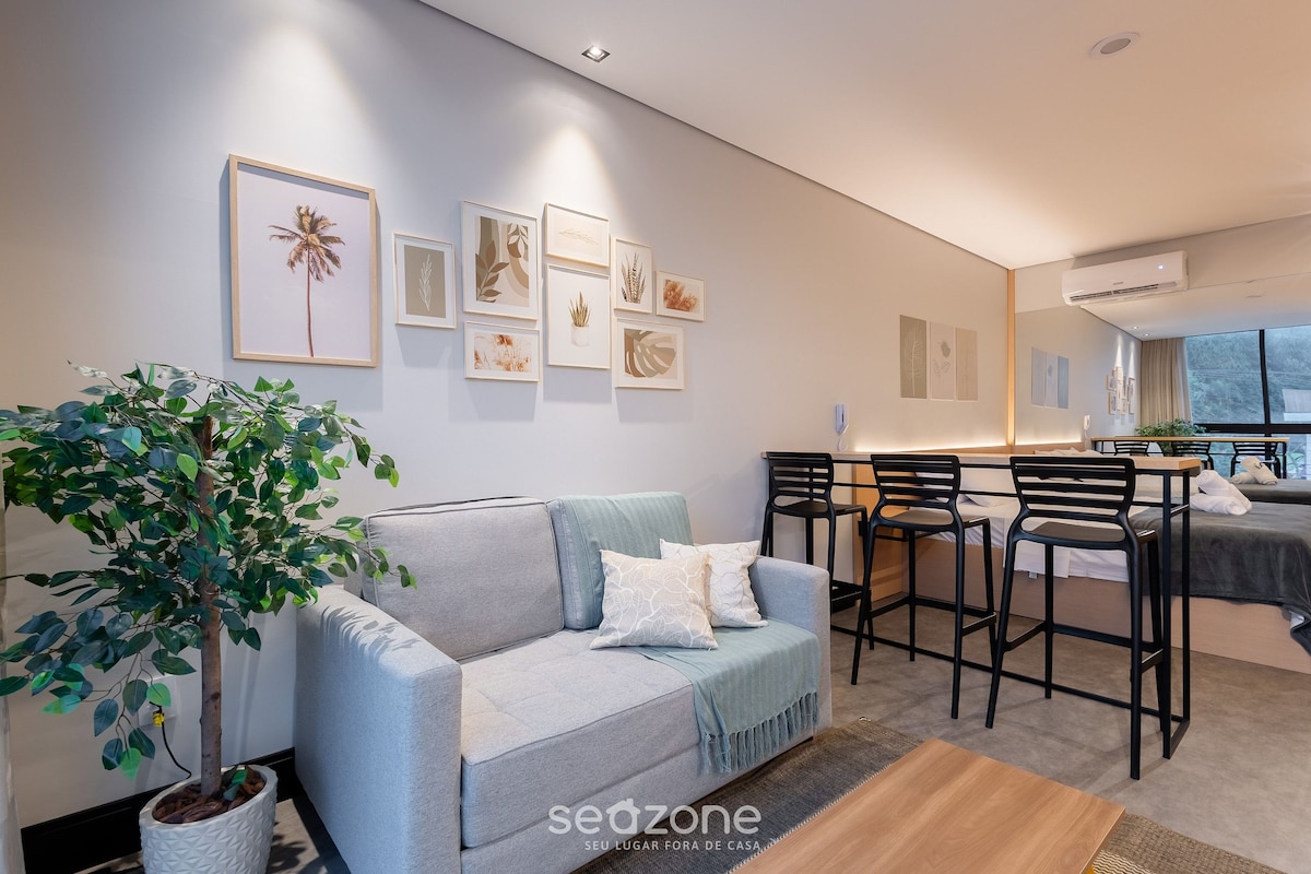 Design et confort sur la côte la plus animée ! Studio moderne à 300 m de la plage, avec un lit queen size, un canapé-lit, la climatisation, une télévision connectée et le Wi-Fi. Une cuisine équipée et un coin repas complètent l'expérience. Le bâtiment durable offre un accès par reconnaissance faciale, une automatisation vocale et une énergie propre. Un environnement conçu pour ceux qui apprécient le confort, la mobilité et le style. Emplacement privilégié, à proximité des commerces et des restaurants. Découvrez Balneário avec style. Réservez votre expérience exclusive maintenant !