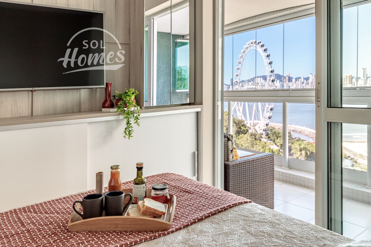 Devant la grande roue GÉANTE WHELL FG. Proximité : marche > Praia do Buraco et Praia Brava, Morro do Careca. À la pointe sud de la Colombie-Britannique, il y a le téléphérique qui mène à la plage de Laranjeiras. Et en voiture/uber à 10 min, il y a l'intercraias/ plage de l'Estaleiro/Estaleirinho/Taquaras/Taquarinhas et Praia do Pinho(nudisme). Aquarium océanique à la pointe sud de la Colombie-Britannique. Promenade en bord de mer pour courir et faire de la randonnée, et une grande variété de boutiques, de restaurants, de pâtisseries, de centres commerciaux et de galeries sont dispersés dans la ville de Colombie-Britannique.