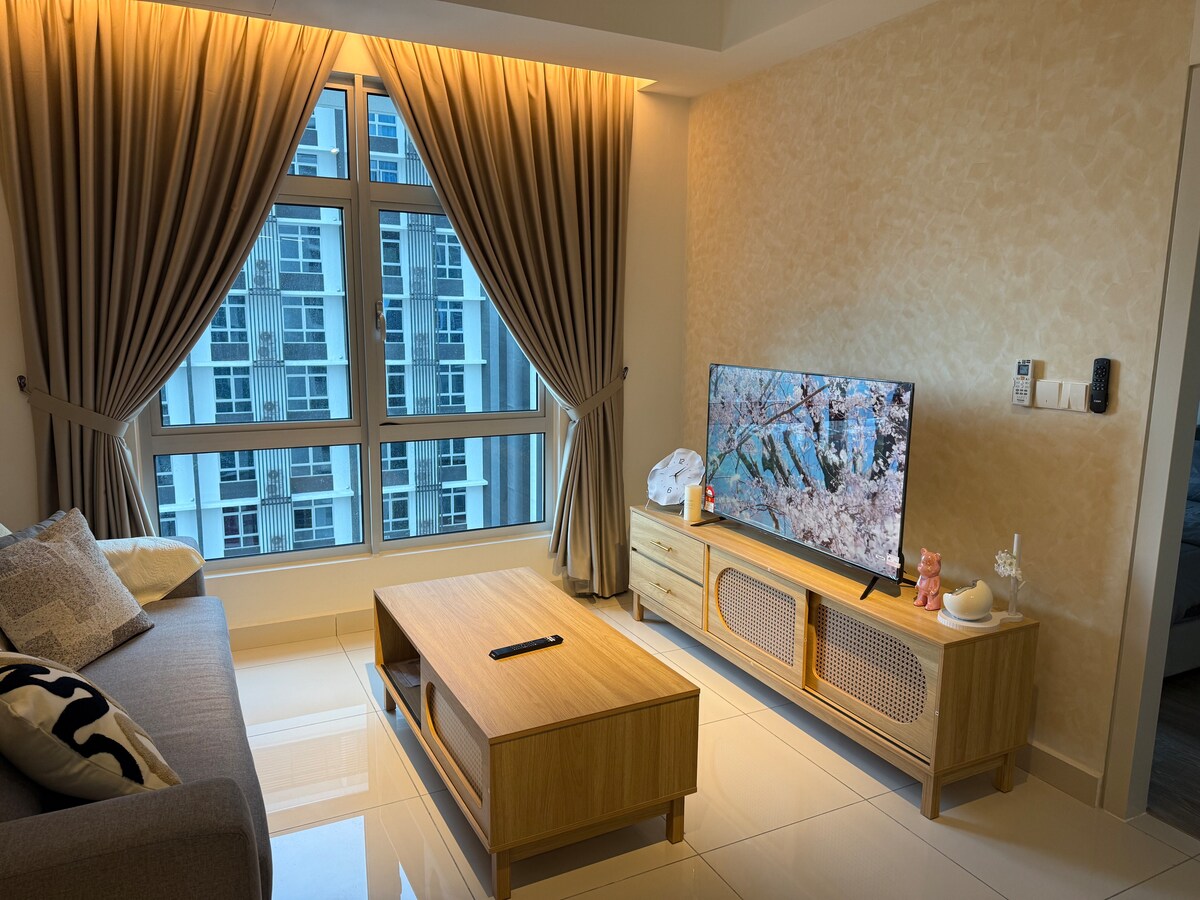 Bienvenue dans votre maison confortable à Kajang ! Notre logement moderne de 2 chambres est conçu avec une table îlot unique, un aménagement ouvert lumineux et une belle vue sur la piscine qui ajoute une touche de style resort à votre séjour. Accès facile aux commerces et aux transports à proximité, parfait pour une courte escapade, un moment en famille ou même un séjour plus long. Rentrez chez vous pour vous détendre dans l'espace de vie accueillant, cuisiner un repas simple dans la cuisine bien équipée ou vous détendre au bord de la piscine. Nous avons créé cet espace pour qu'il soit chaleureux et accueillant.