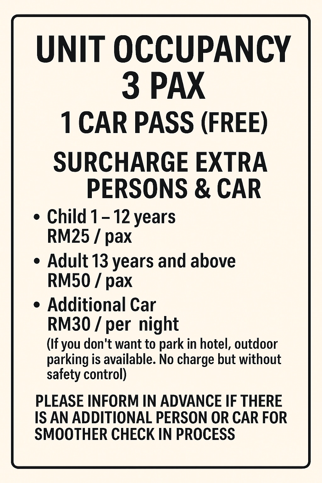 Détendez-vous en famille dans ce logement paisible. Profitez de la belle vue à 5 minutes de la plage de Desaru. Il y a de nombreuses installations et équipements à proximité. SksMall, KFC, Vivo Pizza, Bingxue, Family Mart, Zus Coffee, Subway et bien d'autres.