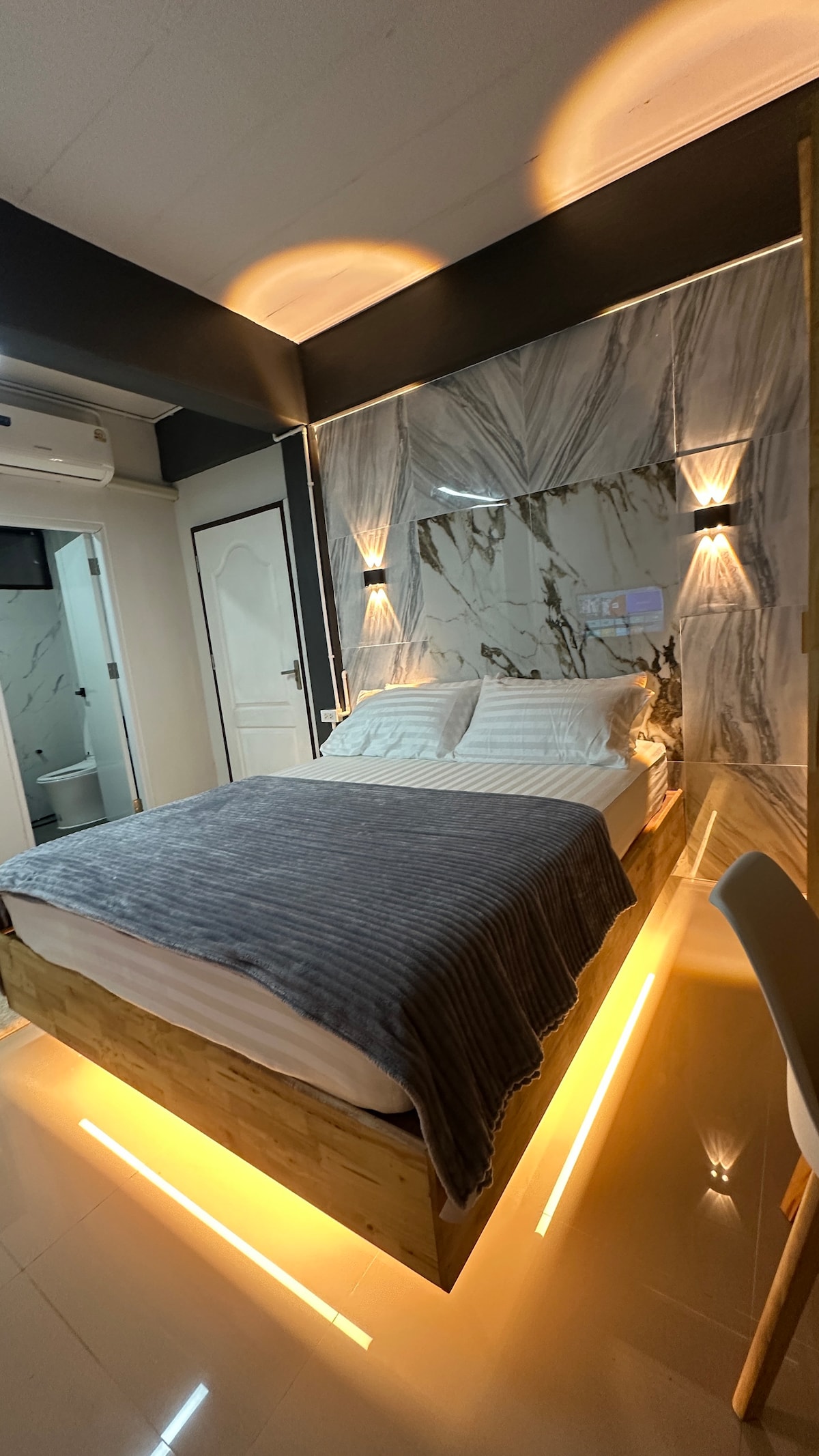 Welcome to your peaceful retreat in the heart of Bangkok / Donmaung Airport ! Our studio condo bedroom combines minimalist design with cozy comfort, creating the perfect haven for relaxation and exploration. Perfect for working : Wifi Speed 500/500 mbps. + washing machine + Pool + Gym+ Sauna + Local market close to the condo + 7-11 shop downstair (No Parking / No Cooking / No smoking Cigarettes & Marijuana) /No sofa bed