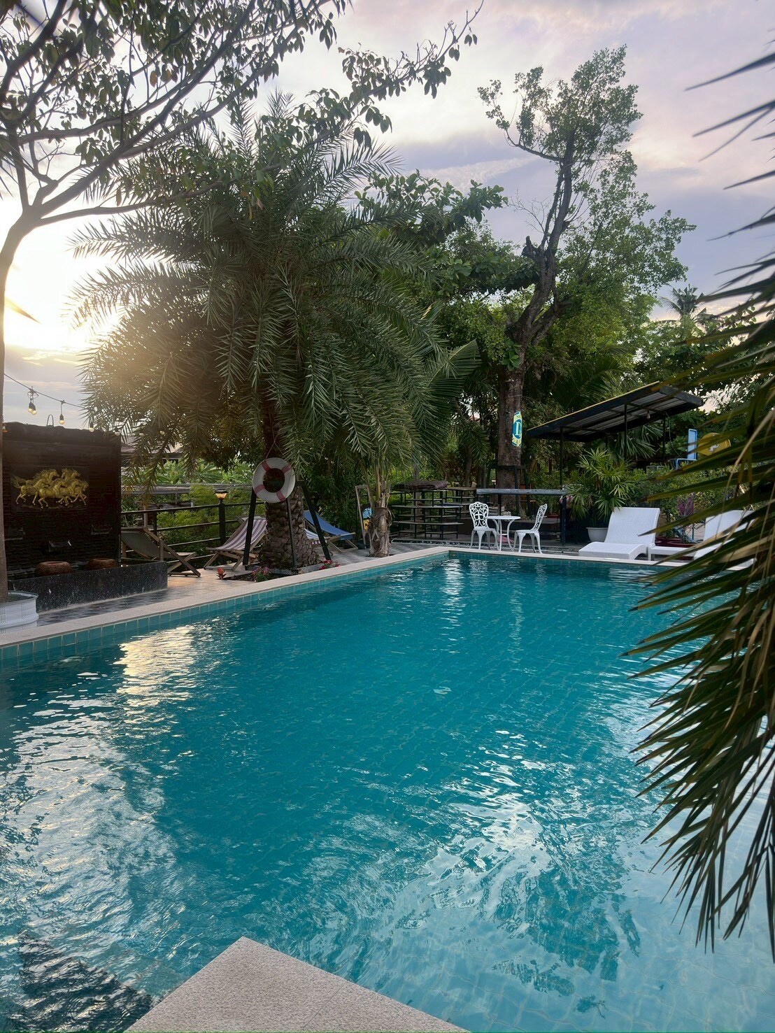 Évadez-vous dans une belle villa avec piscine et jardin luxuriant. Cette retraite paisible, lumineuse et confortable est située dans un quartier central pratique, à seulement 15 minutes de l'aéroport Don Muang. Profitez d'équipements fantastiques sur place, notamment une table de tennis, une table de billard, un terrain de volley-ball, un bain de glace et de la navigation de plaisance dans le canal. Vous pourrez vous détendre au bord de la rivière. À proximité : Quatre 7-Eleven, supermarché CJ, centre commercial Robinson, marché local, marché nocturne. Votre espace lumineux et confortable vous attend dans cette charmante villa.
