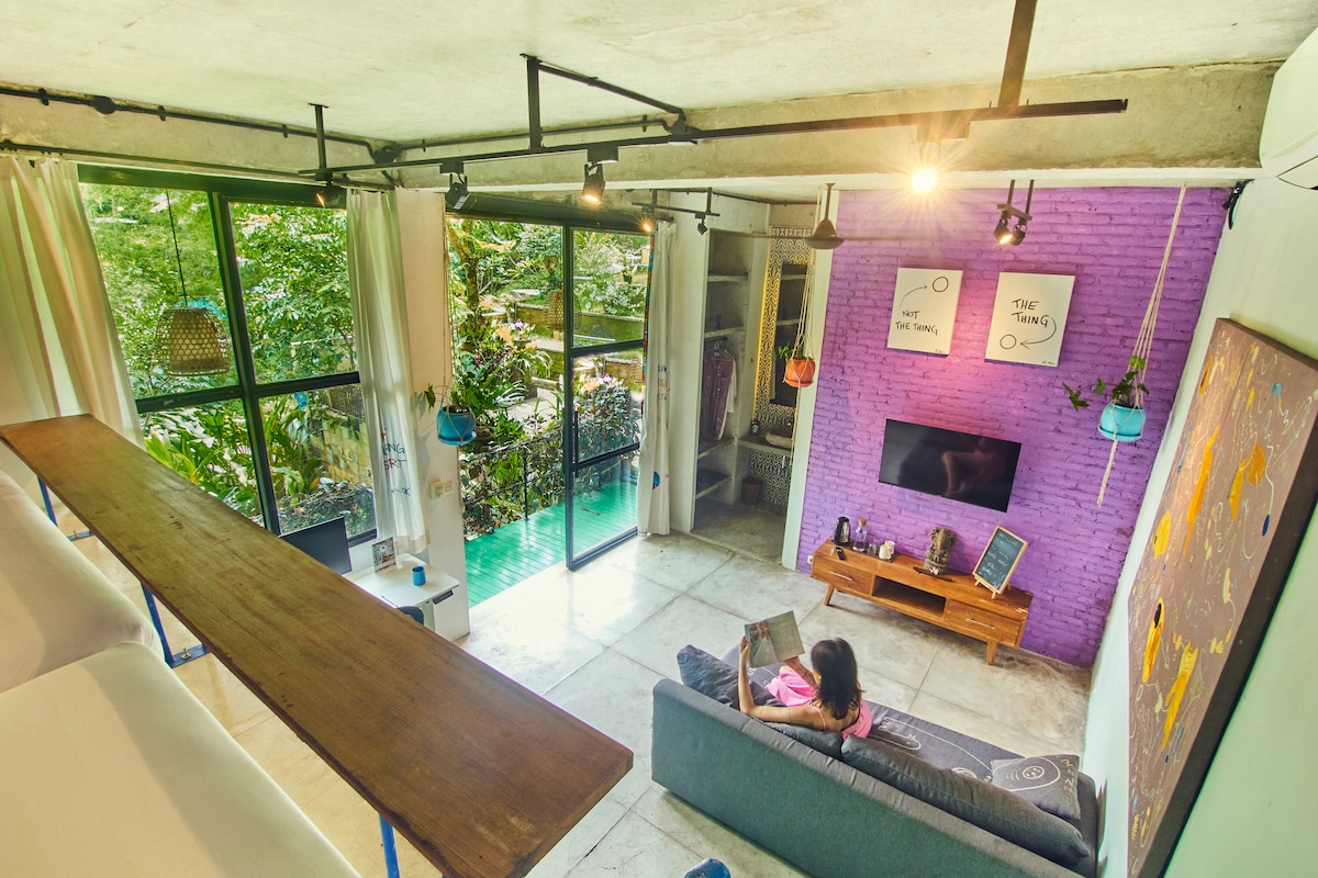 Loft jungle créatif • 2 lits • Bureau debout