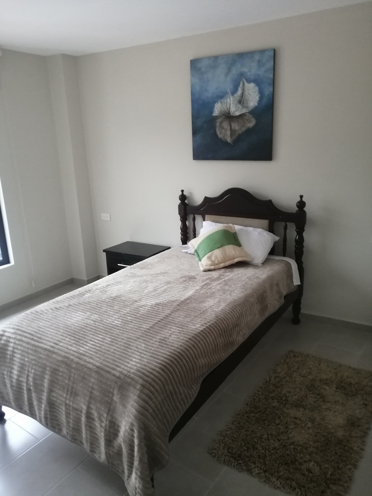 Vivez des expériences inoubliables avec votre famille ou votre groupe d'amis dans cet appartement très élégant, moderne et avec beaucoup de style. Situé au 3ème étage, entièrement meublé, avec vue panoramique sur la ville et les montagnes ; confortable dans un quartier central et très sûr. Il dispose d'un salon, smartv, salle à manger, cuisine, salle de bain sociale, 3 chambres, 2 salles de bains complètes, 2 balcons, accès à la terrasse. Wi-Fi, Internet, eau chaude (24 heures) garage automatisé privé pour 1 voiture. Lits : 3 (2 queen size, 1 full size) Capacité : 6 voyageurs.