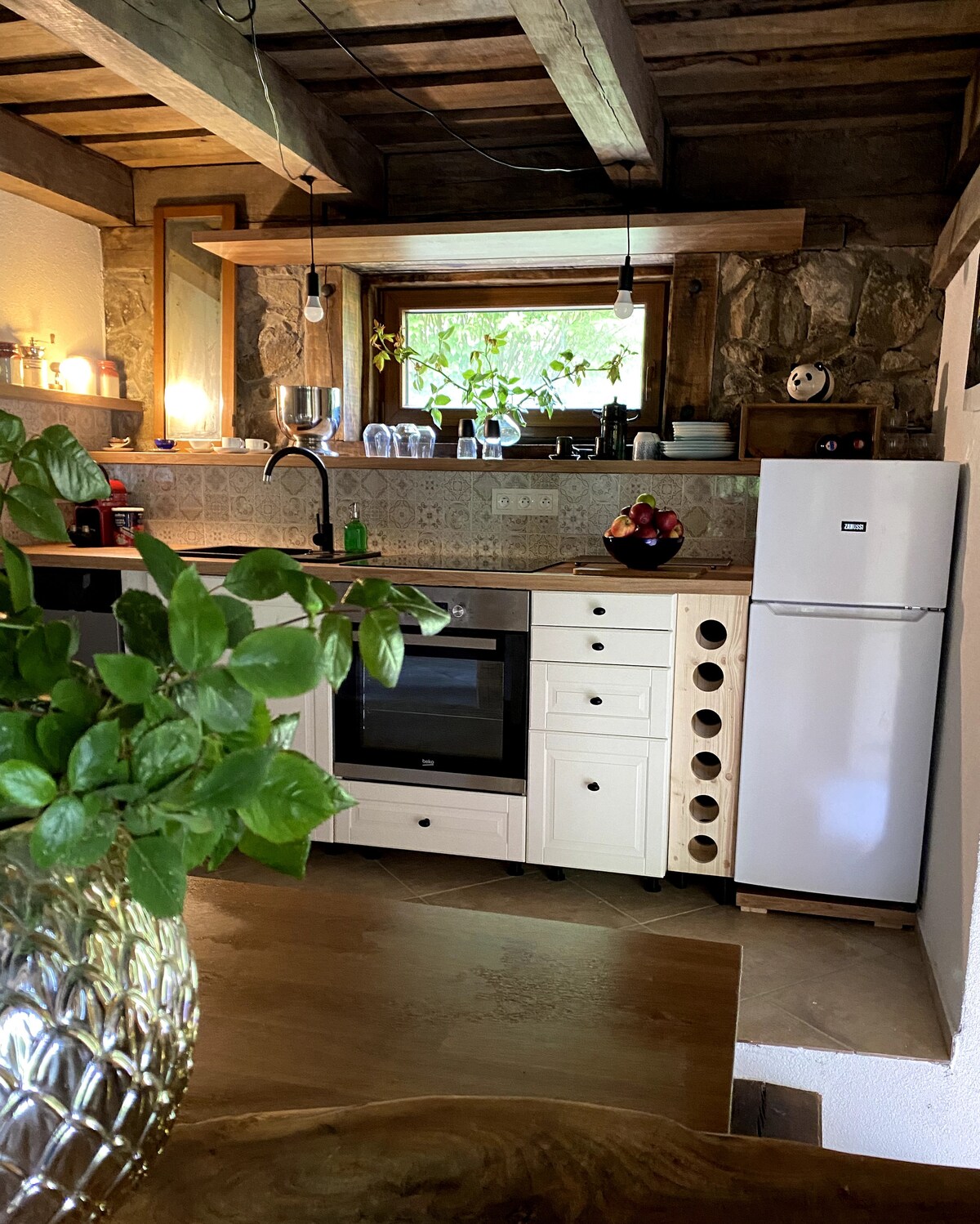 La pierre, le bois et l’argile locaux sont les principaux matériaux de construction de cette maison, et l’atmosphère naturelle se ressent tout au long de votre séjour. L’intérieur est fortement lié au jardin, qui dispose d’une terrasse extérieure avec une cuisine d’été et des parterres fleuris, pleins de fruits et d’herbes sains et savoureux tout au long de l’année. Le foyer extérieur est prêt à offrir une expérience gastronomique sous la forme d’un barbecue rond non conventionnel, qui transformera chaque barbecue en un moment inoubliable. Offrez-vous l'expérience d'un hébergement dans la maison de Hobit !