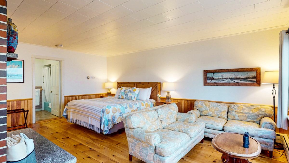 Chalet indépendant (330 pieds carrés) situé à l'Ivy Manor Inn - Centre du village. Entrée privée et stationnement hors rue. Chambre de style hôtelier, pas de kitchenette. L'auberge est située dans le centre-ville de Bar Harbor sur l'historique Main Street en face du Village Green. Marchez jusqu'à tout ce que le village a à offrir. Laissez votre voiture en toute sécurité dans notre parking privé pendant que vous explorez la ville, ou faites un petit tour de l'autre côté de la rue pour prendre l'Island Explorer dans le parc national d'Acadie.