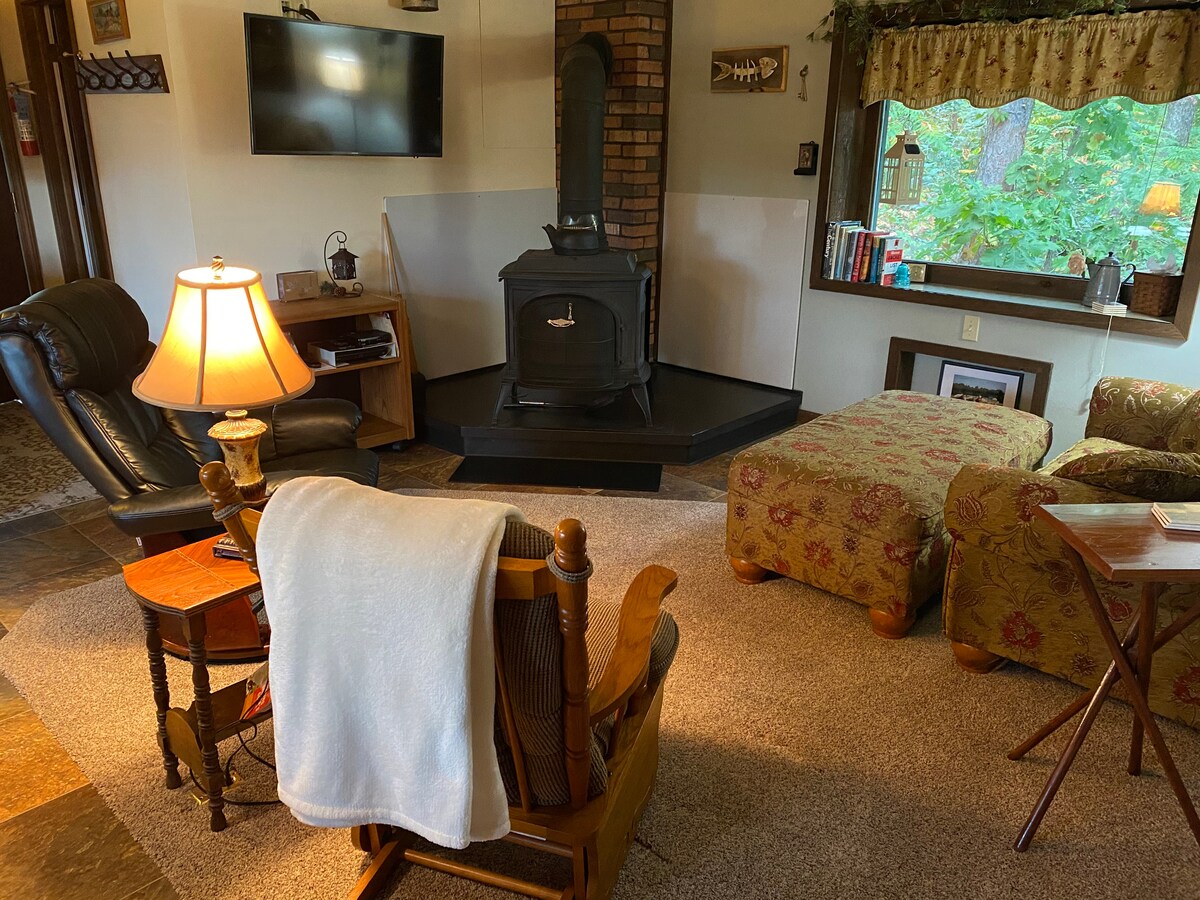Bienvenue dans notre charmant chalet de deux chambres, parfait pour se ressourcer ! Il dispose d'un lit queen-size et d'un lit double, idéal pour une petite famille ou un couple. Profitez de la baignoire à jets double ou de la douche de luxe. Une cuisine entièrement équipée, une télévision par satellite, un lecteur DVD et la climatisation assurent le confort. Réchauffez-vous près du poêle à bois Vermont de novembre à avril. Profitez de la vue sur l'étang, du bluff de Baraboo et rencontrez nos chevaux et chiens sympathiques. Au plaisir de vous accueillir !