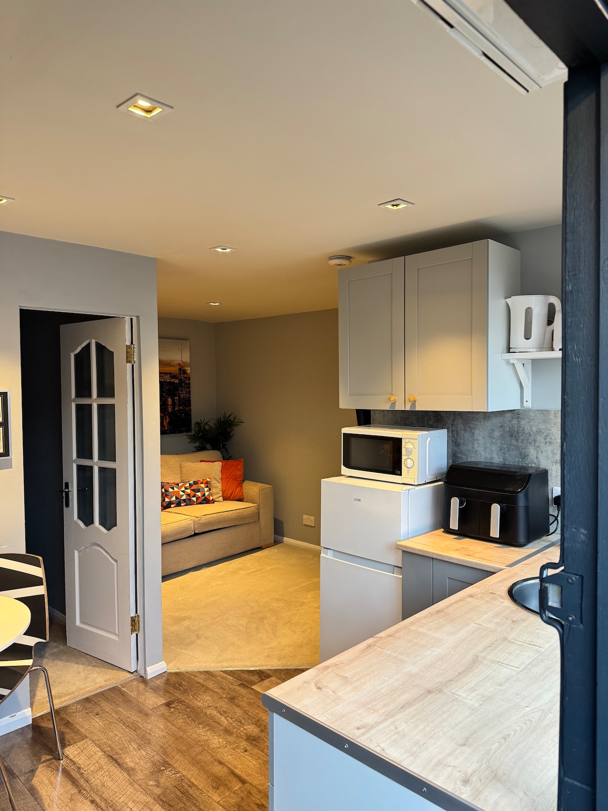 Surplombant les champs, cet espace de luxe au dernier étage vous invite à vous détendre. Ultra-propre, paisible et magnifiquement décoré. Équipé de tout le nécessaire et plus encore. Préparez du café frais avec la machine à café Ninja Luxe. Diffusez vos émissions préférées sur les téléviseurs intelligents, jouez à des jeux de société en groupe ou travaillez là où la vue vous inspire. Quel que soit le but de votre séjour, que vous travailliez ou que vous vous détendiez, c'est l'endroit idéal ! Londres est à proximité, mais semble bien loin. Toujours un endroit où se garer aussi !