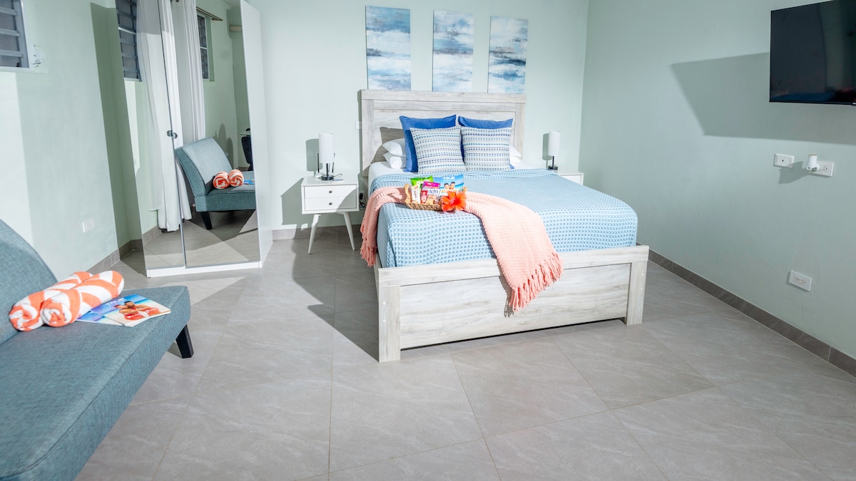 Stylish, cool yet affordable accommodations in a fabulous location. EXCELLENT WIFI. Unbeatable value for lovers of Anguilla's West End! Safe for singles - romantic for couples - all welcome. Walk to beaches: Mead's, Barnes and Maunday's Bays & places like Four Season's & Picante. Beautiful indoor/outdoor kitchen/lounge area &tropical garden. Discounts for long stay. You must be VACCINATED to vacation in Anguilla. Please visit the Anguilla Tourist Board for current entry protocols.