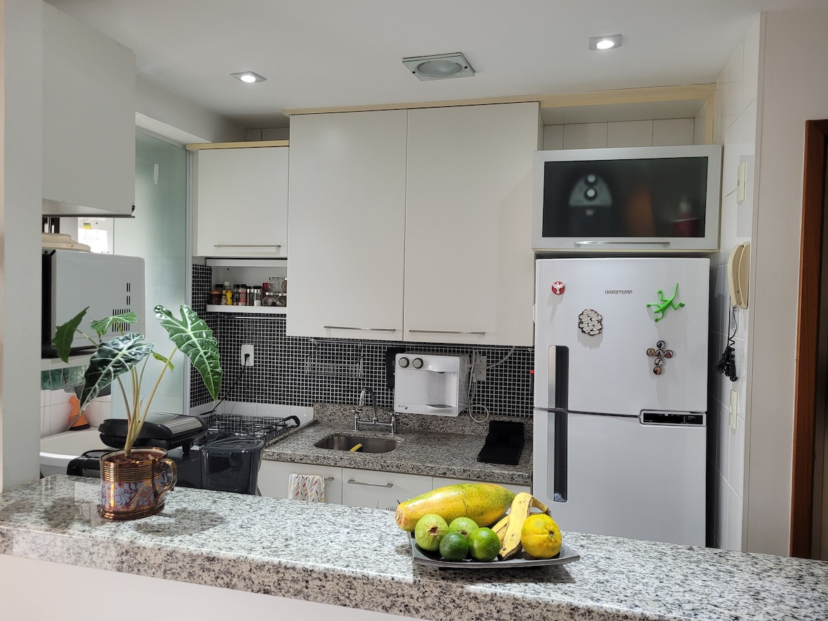 À un pâté de maisons de la plage - l'hôte parle allemand, anglais et espagnol. Endroit calme, beaucoup de verdure, balcon avec vue, hamac et soleil du matin. Séjour intégré avec canapé-lit, télévision et split. Chambre avec lit queen size, placard et coffre-fort. Appartement en copropriété avec piscine chauffée, sauna, restaurant, épicerie et parking. 📍 Bien situé : près des marchés, des centres commerciaux et de la plage, avec accès en voiture, métro, BRT, Uber et bateau-taxi. ⭐ IDÉAL POUR : • Couples • Petites familles • Cadres • Travail à distance + loisirs