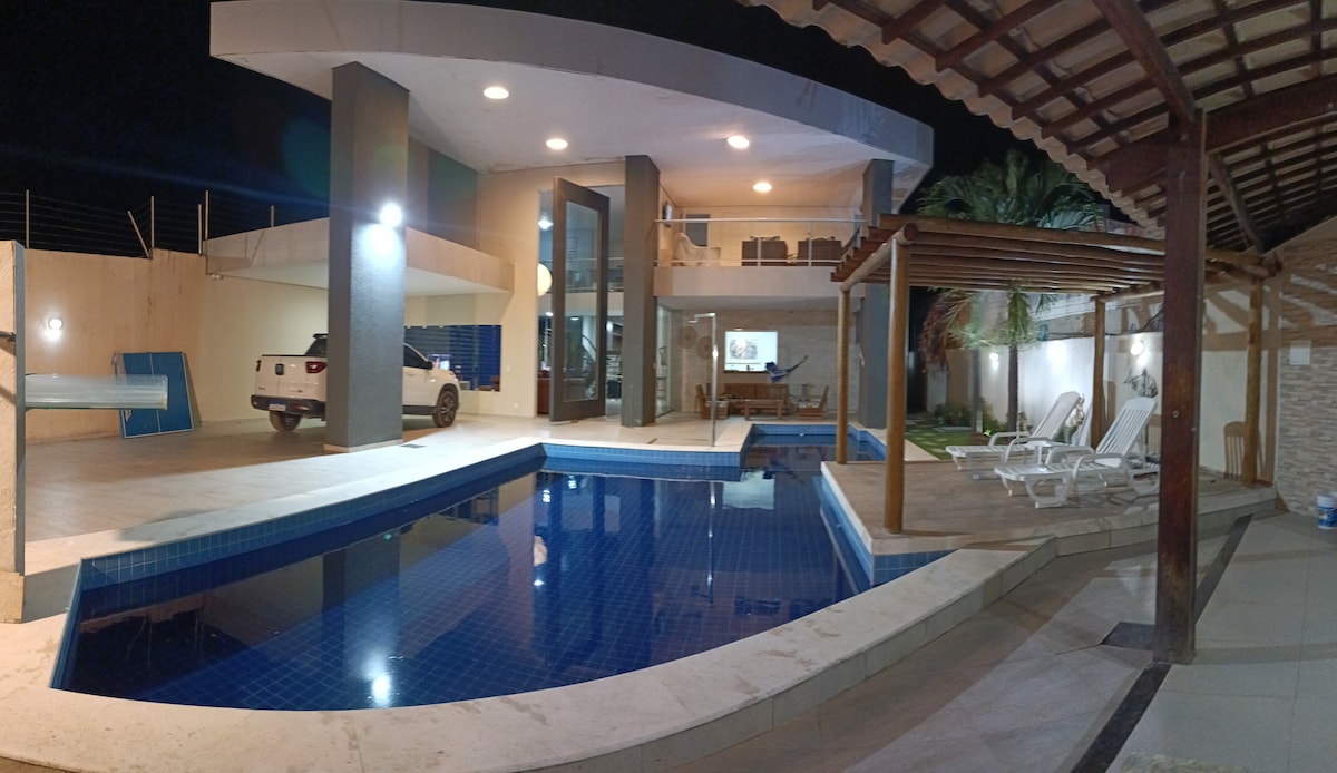 Emmenez toute la famille et les amis dans ce super endroit avec beaucoup d'espace pour s'amuser. Il y a 06 chambres (toutes avec air conditionné) à l'intérieur de la résidence, dont 05 suites, une chambre extérieure à l'extérieur de la résidence, chambre de dépendance avec suite. À 60 mètres d'une belle plage. La maison est à 5 km de la plage du francês et à 5 km de la plage de gunga, les plages les plus demandées de l'État d'Alagoas. Remarque : capacité maximale 21 personnes.