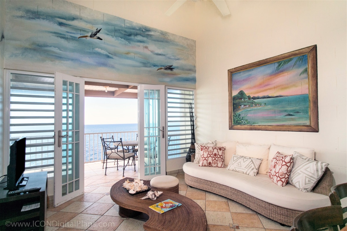 Sanctuaire absolument magnifique EN FACE DE L'OCÉAN ! Votre propre paradis privé à moins de 10 minutes de la place de la ville de Rincon. Adapté aux familles avec lit pour bébé et jeux/puzzles pour enfants. Climatisation complète, WiFi haut débit, entrée privée avec cour exclusive, grand balcon à l'étage et terrasse ensoleillée en bas. Télévision connectée 4K 50 pouces avec Netflix, Amazon et bien d'autres. Cuisine entièrement équipée, barbecue au gaz extérieur en acier inoxydable, ustensiles, literie, articles de toilette, équipement de plage... tout ce dont vous avez besoin pour un séjour parfait !