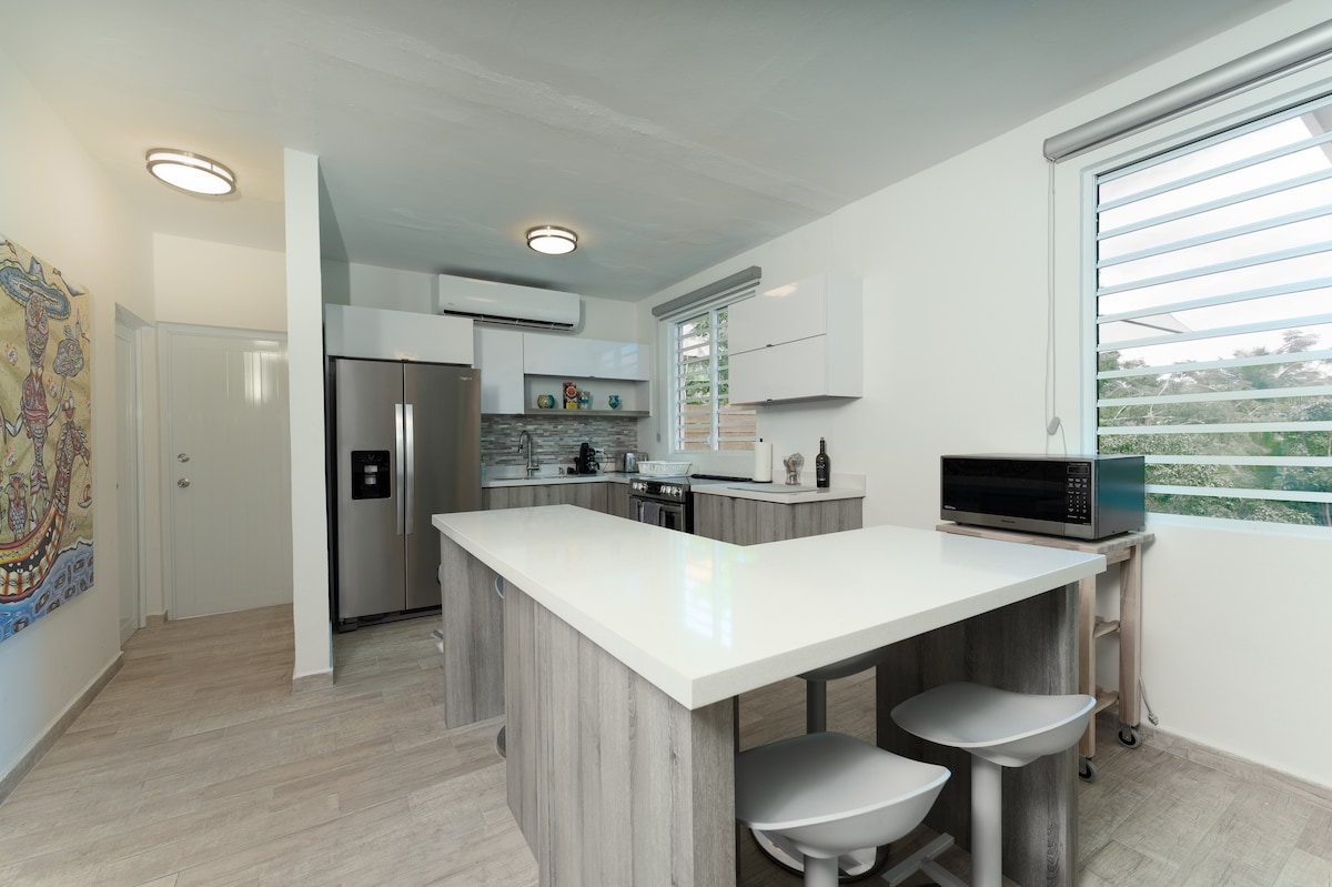 Découvrez l'essence de Rincón dans notre maison récemment rénovée, où des vues à couper le souffle sur la montagne vous attendent depuis le balcon. Située à quelques kilomètres de plages immaculées et de la place animée de la ville, cette retraite accueillante offre la fusion idéale de détente et d'aventure pour les familles et les amis désireux d'explorer la beauté de Porto Rico. Découvrez l'incarnation du confort et de la commodité dans ce havre de paix soigneusement rénové.
