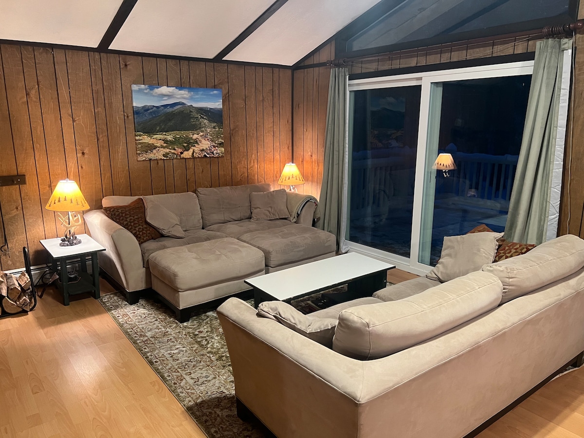 Bienvenue au Bear Hill Chalet. Réveillez-vous avec une vue panoramique sur les montagnes ou asseyez-vous près d'un feu confortable après une longue journée. Idéalement situé à moins d'un kilomètre de Story Land et à quelques minutes des stations de ski, des randonnées, des boutiques, des restaurants et de toutes les activités amusantes du mont La vallée de Washington a à offrir. Située dans un quartier calme et boisé, la maison comprend une salle de jeux, un Peloton, une grande cheminée en pierre et une cuisine entièrement équipée. Peut accueillir confortablement 8 personnes ; parfait pour 1 à 2 familles ou une escapade entre amis.