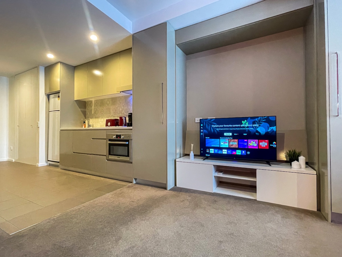Évadez-vous dans un appartement confortable d'une chambre niché le long de Kingston Foreshore. Un endroit où le confort contemporain rencontre une vue imprenable sur le lac. Niché dans le centre animé de Kingston Foreshore, à quelques pas des meilleures attractions, des cafés branchés et d'excellents magasins. Bâtiment sûr et sécurisé avec parking souterrain pratique au cœur de Canberra. N'hésitez pas à nous envoyer un message pour toute question. Nous avons hâte de vous accueillir !