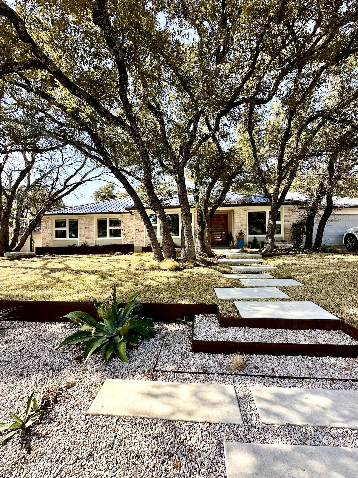 Maison élégante de style moderne du milieu du siècle dans le Hill Country sur près d'un acre, à Austin juste à l'extérieur de Dripping Springs. Peut accueillir 8 personnes avec de hauts plafonds, une cuisine entièrement équipée et des chambres confortables. Détendez-vous sur la terrasse, le porche ou la cour après avoir exploré Austin, Bee Cave, le lac Travis, le lac Austin, les établissements vinicoles, les lieux de mariage et le golf de Barton Creek. Parfait pour les groupes, les familles ou les invités à un mariage à la recherche d'une retraite paisible dans le Hill Country avec un accès facile à la ville.