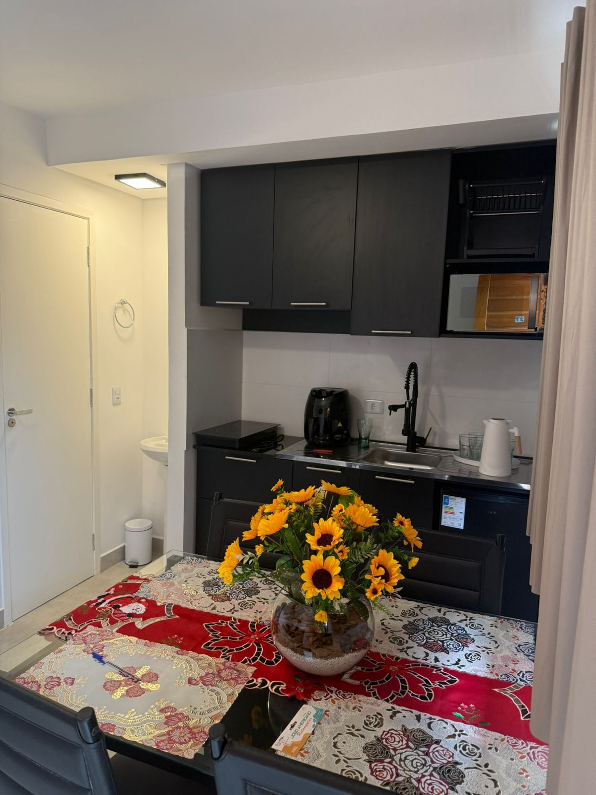 Appartement moderne complet à l'Hôtel Le Bourganville, au cœur d'Alphaville. Il dispose d'un salon avec télévision, d'une cuisine équipée (micro-ondes, plaque de cuisson, réfrigérateur, ustensiles), d'un lit double, d'un balcon, de la climatisation dans la chambre et le salon, d'une connexion Wi-Fi et d'une place de parking. Structure avec piscine chauffée, salle de sport, court de tennis, sauna, restaurant et épicerie. Idéal pour ceux qui recherchent la praticité avec une ambiance de maison. Emplacement privilégié, proche des commerces, des restaurants, des centres commerciaux et des services essentiels. 703