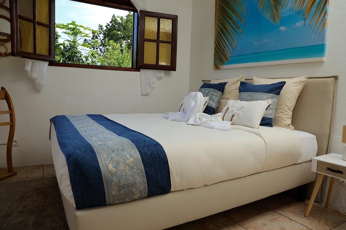 Oubliez vos soucis, vous êtes aux Antilles ! Niché dans un beau jardin tropical et face au Grand Cul de Sac Marin Ti Colibri est un logement spacieux très bien équipé qui répondra à toutes vos attentes. Aménagement parfait pour 2 couples ou une famille avec 2 enfants : 2 chambres avec chacune leur belle salle de bains indépendante. Environnement tranquille et vue magnifique. Idéalement placé pour toutes vos escapades, vous pourrez découvrir les recoins magiques de notre belle ile...