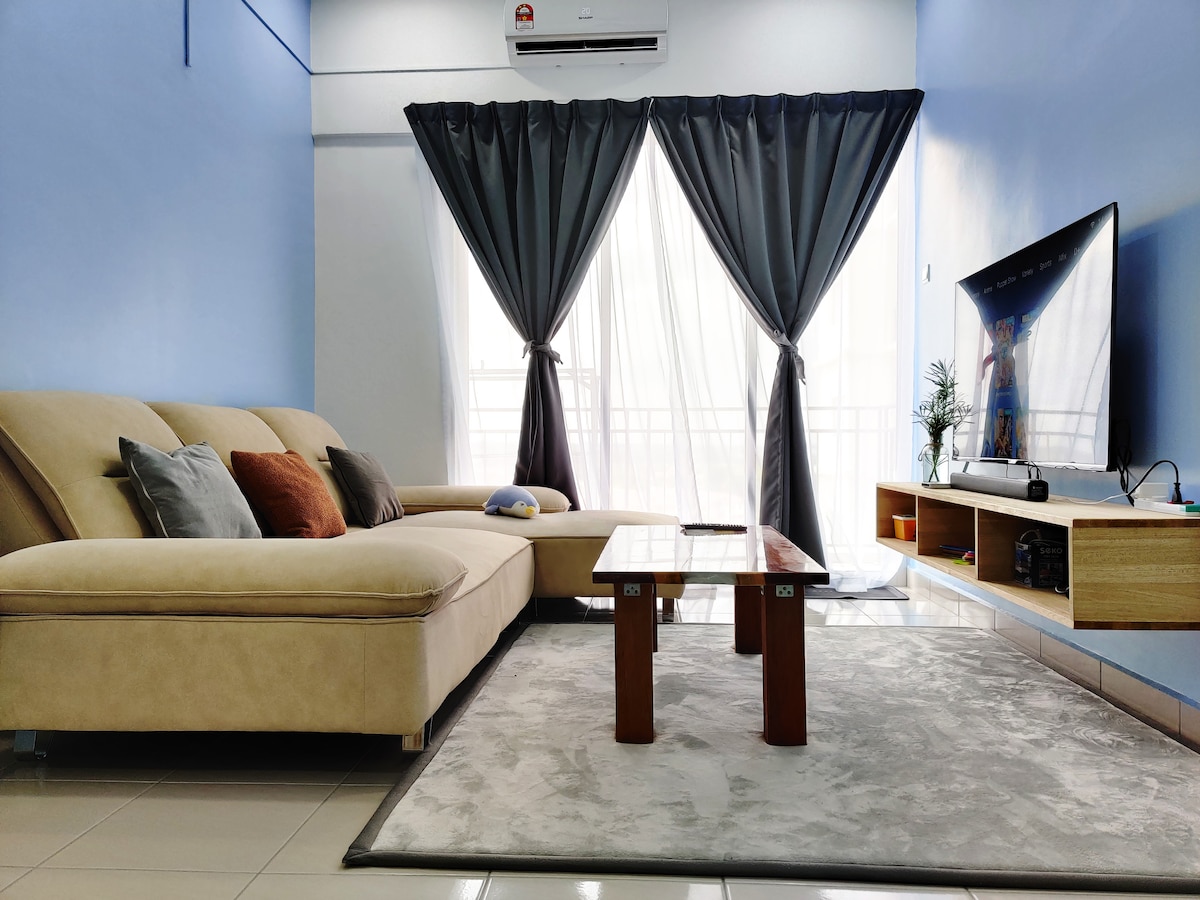 Un environnement confortable et calme avec une maison de ville entièrement meublée. Nous disposons de la climatisation, réfrigérateur, lave-linge, TV écran plat, cuisinière, four, chauffe-eau, bouilloire, Gratuit des installations telles que :salle de sport, piscine extérieure, terrain de badminton/basket-ball intérieur, aire de jeux et 2 parkings privés gratuits juste à l'extérieur de l'immeuble. Convient pour un voyage d'affaires ou un voyage en famille ou entre amis. Appartement familial confortable et confortable Convient aux familles et amis en activité Sûr et sécurisé, la piscine et le gymnase sont tous gratuits pour les voyageurs. L'environnement est calme et plein d'étudiants