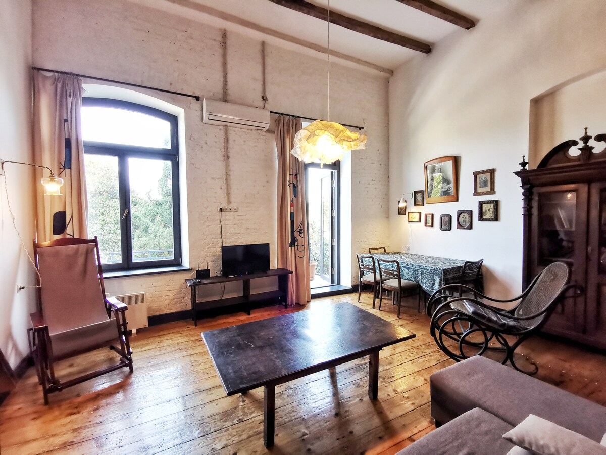 L'appartement de type loft est situé dans le bâtiment du patrimoine culturel dans le centre de Batumi. Le loft dispose d'une grande terrasse pleine de plantes exotiques où vous pourrez prendre un agréable petit déjeuner et vous détendre le soir. Il faut au maximum 10 minutes (1 km à pied) pour rejoindre la plage en passant par le lac Nurigeli. Un grand espace est rempli de beaucoup de lumière du soleil et d'air frais. Loft en particulier sera apprécié par la famille (parents plus deux enfants), idéal pour trois amis et couples.