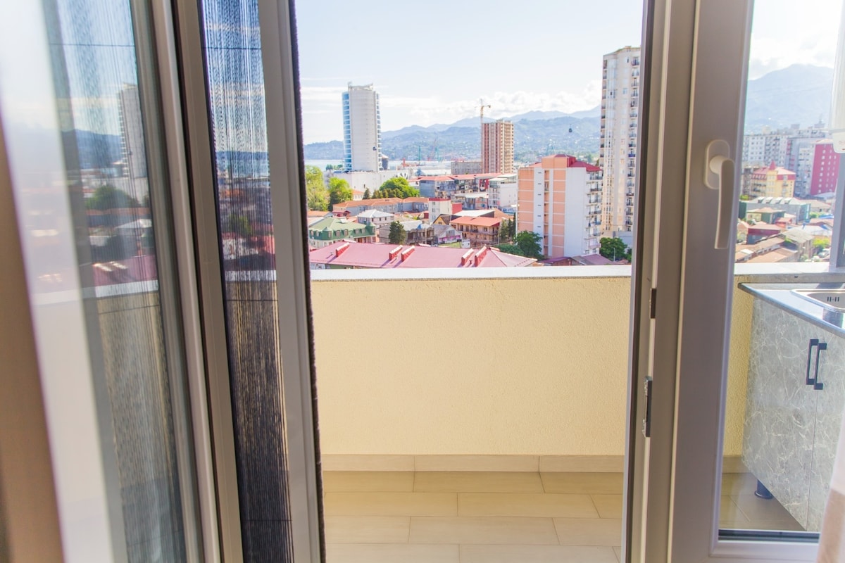 This beautiful contemporary studio flat is just 2 minutes walk from the city's cleanest beach, 5 minutes walk from city central square and all touristic areas, cafes and restaurants. King sized bed with all glass window for nocturnal sky and city gazing. The kitchen is fully equipped with everything you will need. It's wonderfully quiet and secured with high security systems. There is a bike hire station just 20 seconds away, perfect for a cycle along Batumi Boulevard.
