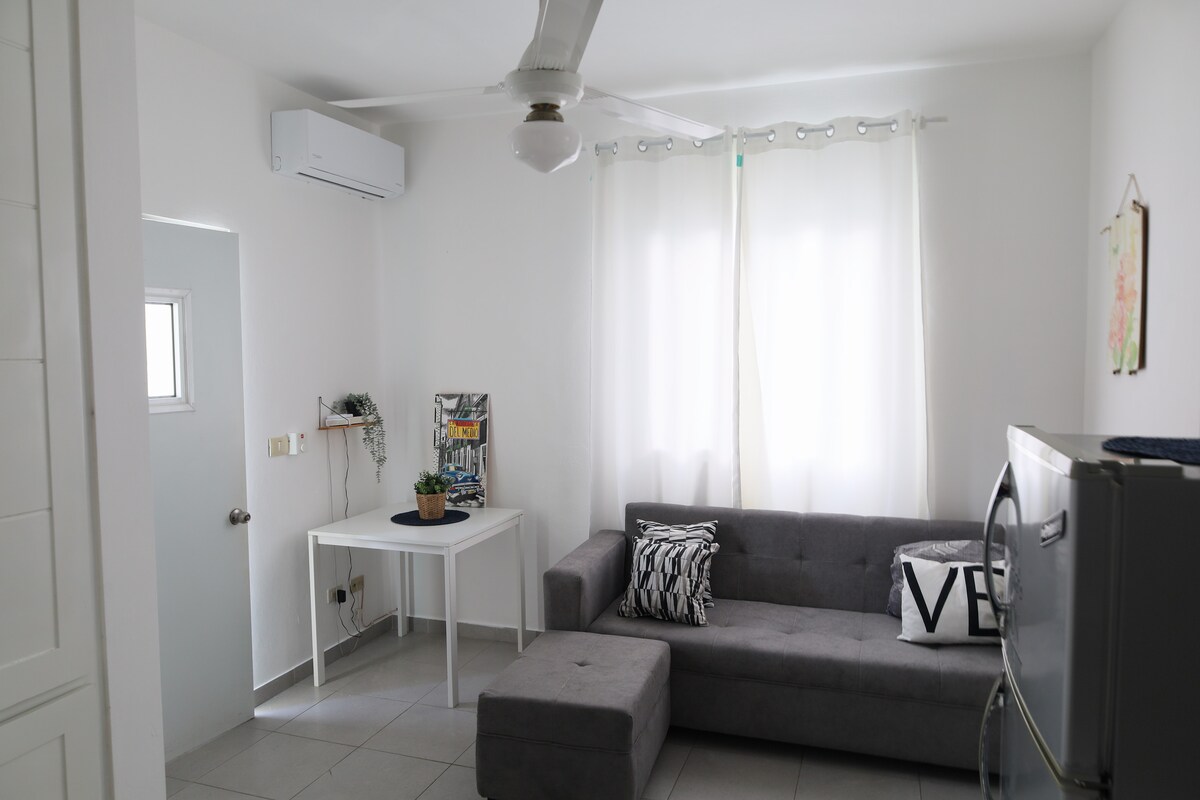 Profitez d'un 🏡 appartement moderne et confortable à Bayahibe 🌊 🛏️Chambre avec la climatisation et un lit confortable. 🍳Cuisine équipée avec réfrigérateur, micro-ondes et ustensiles. 🚿Salle de bain privée avec serviettes impeccables. 🌅Balcon privé pour se détendre avec un café☕️ ✔️Entrée indépendante ✔️WiFi rapide📶 ✔️Environnement calme🌿 ✔️Emplacement idéal près de🚤 pour aller à l'île de Saona, 🛒supermarchés,🍴restaurants et le centre 👣 ✅Je vous aide à gérer les excursions à Saona🏝️, Mano Juan et les transferts aéroport✈️