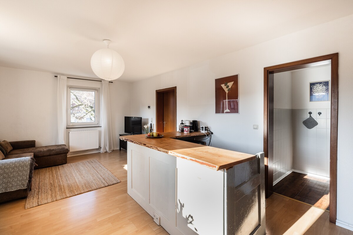 Charmant appartement en duplex avec terrasse sur le toit d'environ 70 m² pour un maximum de 4 personnes Au niveau 1, vous trouverez un salon/salle à manger avec une cuisine entièrement équipée, une table à manger pour 4 pers., 1 canapé-lit avec table basse, buffet et télévision. En outre, un espace de travail avec un bureau, une chaise de bureau et une connexion par fibre optique. Le niveau 2 vous offre une chambre à coucher baignée de lumière, une salle de bains avec douche, WC, lave-linge, sèche-linge et une magnifique terrasse sur le toit qui vous invite à vous attarder.