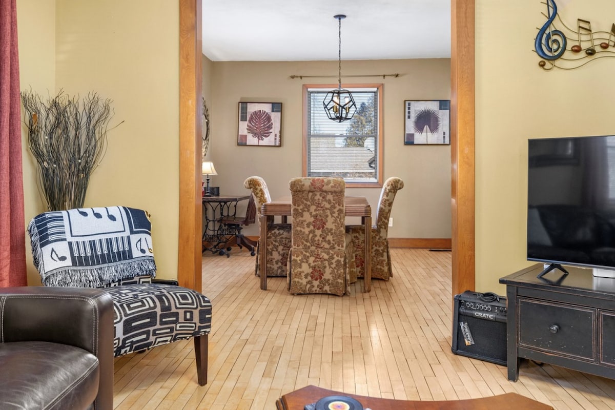 Profitez d'une expérience confortable dans cette maison classique située au centre-ville de Waupaca. Cette retraite calme et pratique comprend une cuisine rétro bien approvisionnée, des boiseries d'origine, deux chambres paisibles (à l'étage), une salle de bain récemment rénovée (au niveau principal), un lave-linge et un sèche-linge (au sous-sol) et un porche arrière pour garder en sécurité tout le nécessaire pour votre aventure. Les hôtes vivent dans l'unité adjacente, ont des décennies d'expérience dans le service à la clientèle et espèrent que votre temps passé dans cette belle région sera sans stress et mémorable !