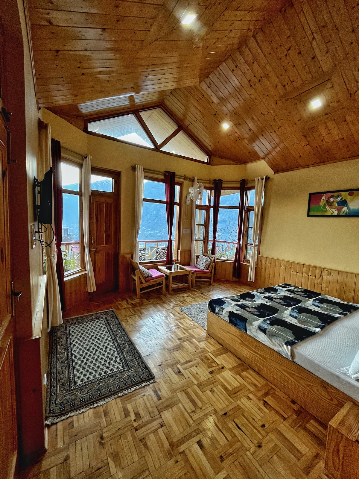 Maison rustique en bois et en pierre nichée dans le pittoresque village de Balsari, The OakHurst est une maison confortable de 2 chambres entourée d'une forêt de pins luxuriante avec de nombreux sentiers de randonnée. Il est situé à environ 10 minutes de la ville principale de Manali et offre une vue imprenable sur les montagnes enneigées et les pentes verdoyantes pittoresques. La maison est une incarnation d'une vie de montagne lente, et est parfaite pour les voyageurs qui cherchent à renouer avec la nature et à se détendre à l'écart du brouhaha de la vie urbaine.