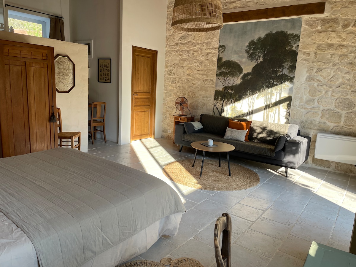 Amateur de patrimoine ? Ce studio est fait pour vous ! Niché au cœur d’un domaine bucolique, ce studio vous accueille dans une maison historique, ancienne écurie du château, magnifiquement rénovée pour allier charme et confort. Un lieu paisible, propice à la détente et à la contemplation. Idéal pour une escapade, à seulement 40h de Paris en train.
