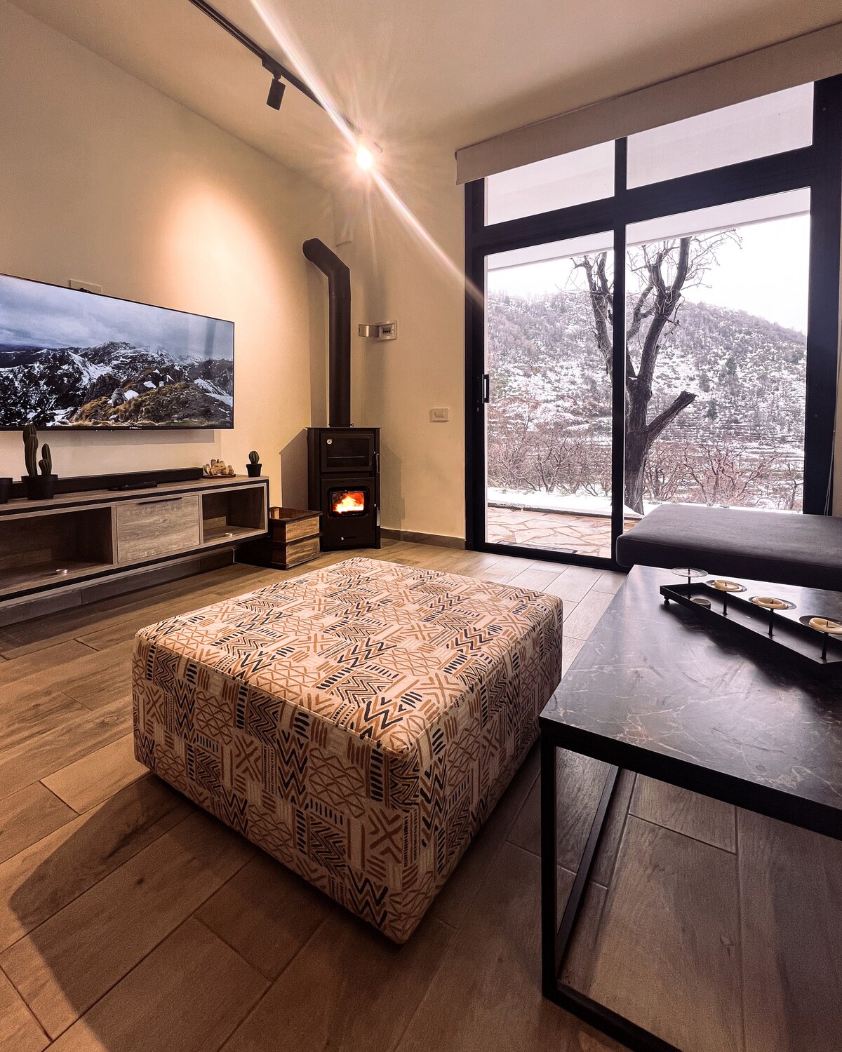 Charming private guesthouse in Aarbaniye, Lebanon, perfect for a serene getaway. Sleeps 3-4 guests: 1 double bed and 1 sofa bed Private outdoor area with a relaxing hot tub Just 40 km from vibrant Beirut, about a 45-minute drive Close to local attractions, blending tranquility with adventure Modern comforts in a cozy, authentic setting
