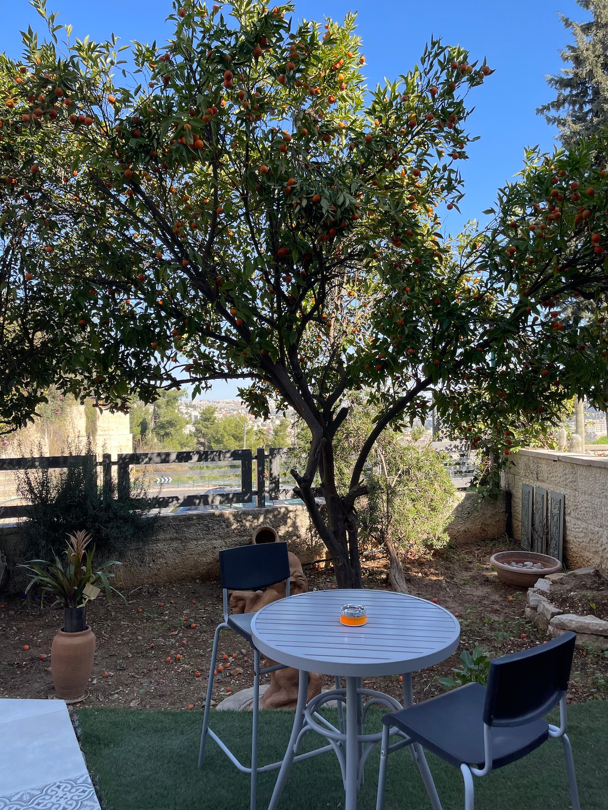 Le chalet est situé dans la pastorale Ein Kerem, juste à côté de Jérusalem, avec d'excellentes connexions avec tous les trésors de la ville. Mais ce village a ses propres perles. Depuis le chalet, vous pouvez facilement explorer les ruelles pittoresques, les sentiers de randonnée et les églises pour terminer dans l'un des restaurants locaux. Depuis les teras, vous profitez du vert, des oiseaux et de la paix du quartier tranquille.
