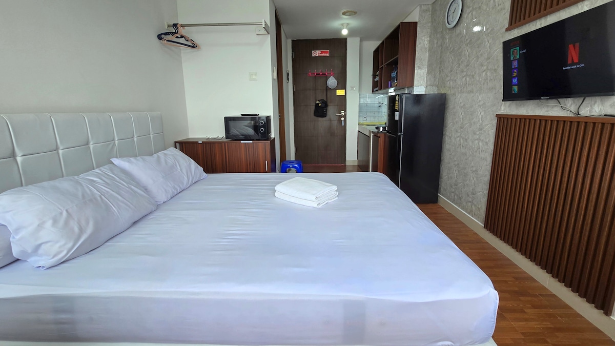 Bienvenue dans notre appartement studio élégant situé juste au-dessus du centre commercial Pakuwon Mall Bekasi : un choix parfait pour les voyageurs à la recherche de confort, de commodité et d'un accès facile à tout en un seul endroit. Pour l'enregistrement, la clé vous sera envoyée, veuillez nous contacter 2 heures avant votre arrivée pour prendre rendez-vous. Merci