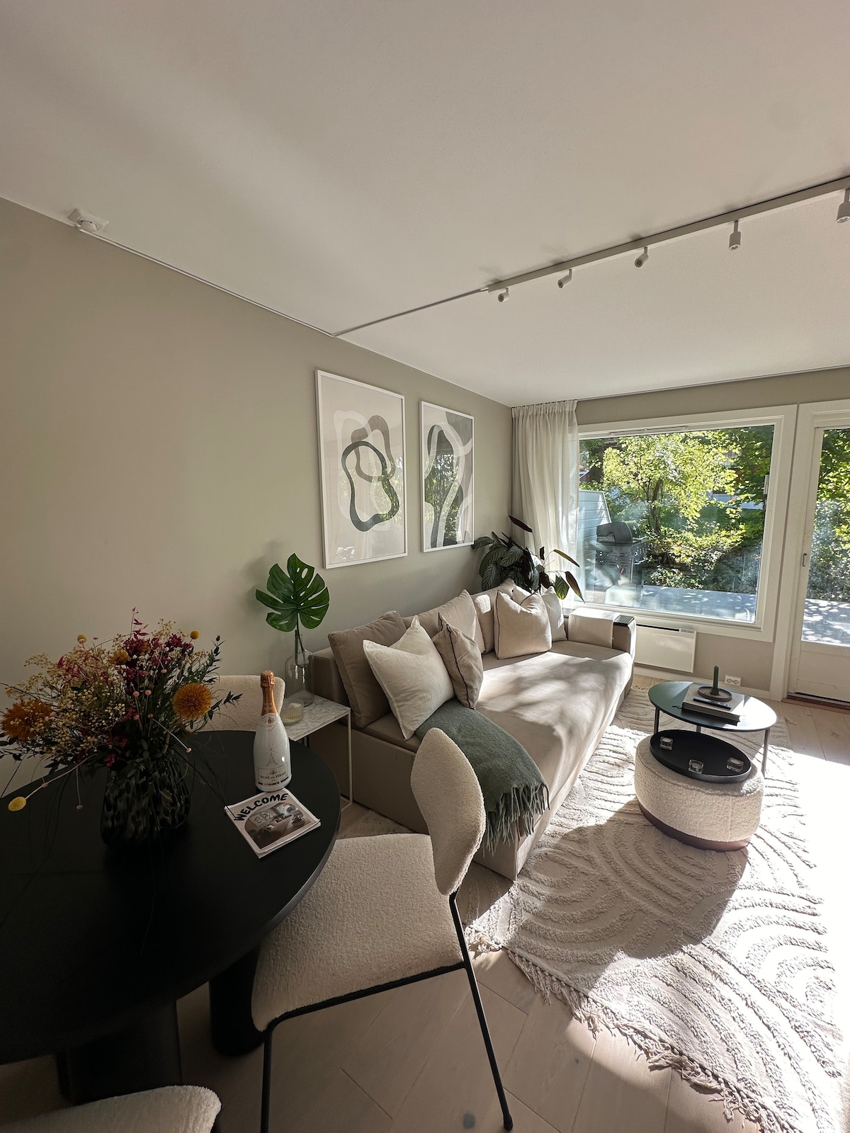 L'appartement fait environ 55 m2 et est meublé, dispose d'une nouvelle salle de bain et d'une nouvelle cuisine, de nombreux placards et est lumineux à l'intérieur. Il y a des fenêtres sur 2 côtés ; la cuisine a une fenêtre avec le soleil du matin et la chambre/salon a une fenêtre où le soleil est jusqu'à environ 9-10 heures du soir en été. Il y a une porte d'entrée à double battant avec une vitre pleine largeur. Espace libre et forêt à 100 mètres, un eldorado pour adultes et enfants en été comme en hiver. Il est à 8 minutes à pied de l'épicerie, et bien relié au centre-ville d'Oslo, Lysaker, Bekkestua, Sandvika, etc.