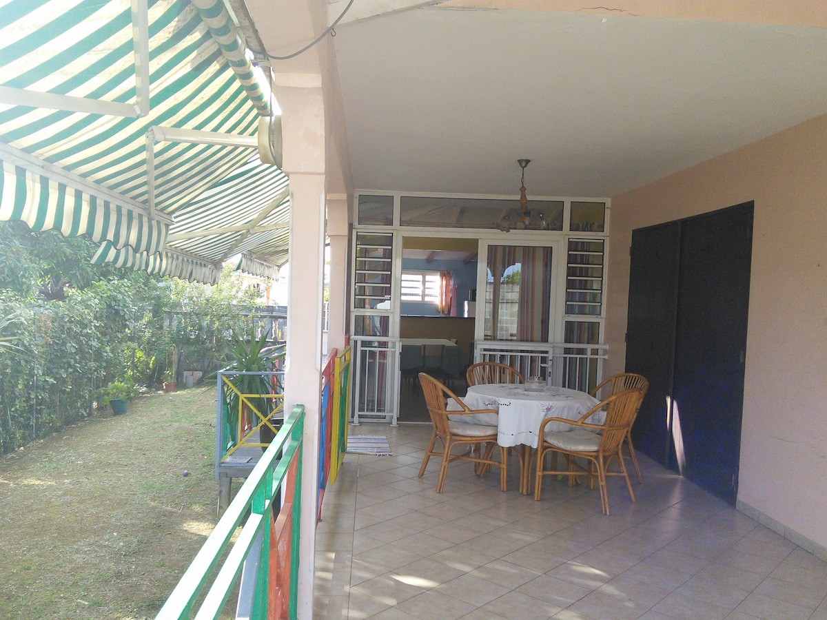 Profitez d'un hébergement touristique classé. Haut de villa indépendant F2 équipé, climatisé, avec terrasse et jardinet privatif, barbecue ainsi qu'une piscine partagée. Au centre de l'archipel, proche de toutes commodités et de Jarry. L'appartement comprend : 1 chambre avec un lit (2 places) salle d'eau-toilette attenante, un espace salon avec canapé convertible 2 places cuisine équipée, coin repas. Vous serez accueillis avec le cocktail de bienvenue. NON- FUMEUR